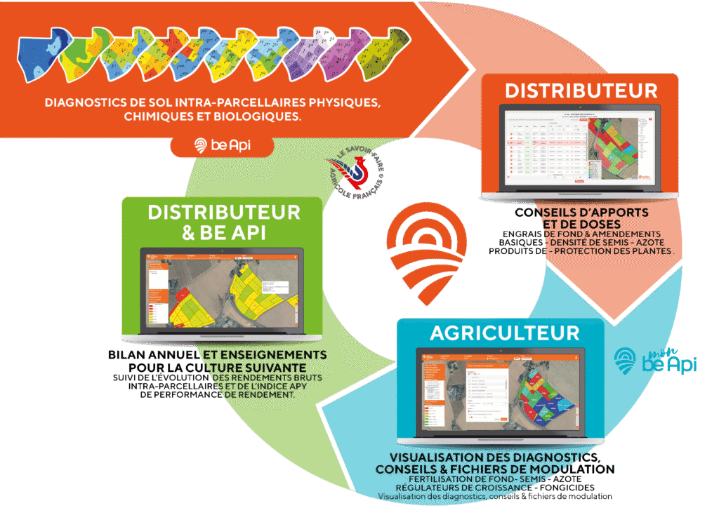Be Api, filiale du groupe InVivo Ag est une société qui marie depuis dix ans des savoir-faire experts et de l’AgTech pour concevoir des solutions digitales d’agriculture de précision intra-parcellaire, destinées aux agriculteurs et leurs distributeurs. Spécialiste des sols, de la collecte et de la valorisation de données agronomiques spatialisées, be Api apporte à ses clients distributeurs et agriculteurs des solutions de diagnostic, de conseil, de valorisation et de modulation clés en main, performantes et efficientes “pour une agriculture et une alimentation durables”.