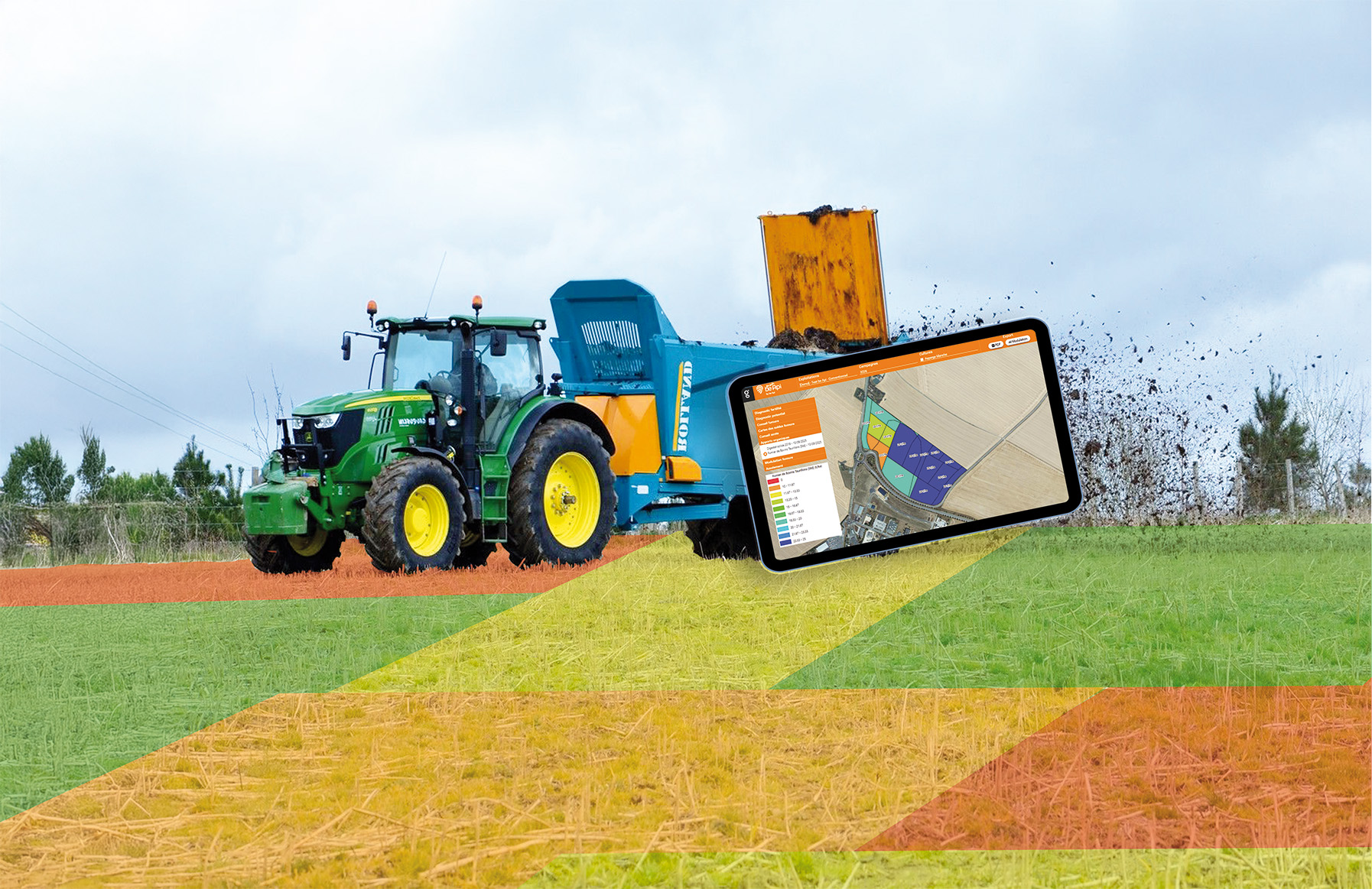 Trois cartes clés sont produites grâce à ce diagnostic : Conductivité électrique des sols, Réserve Utile (RU) et Potentiel.